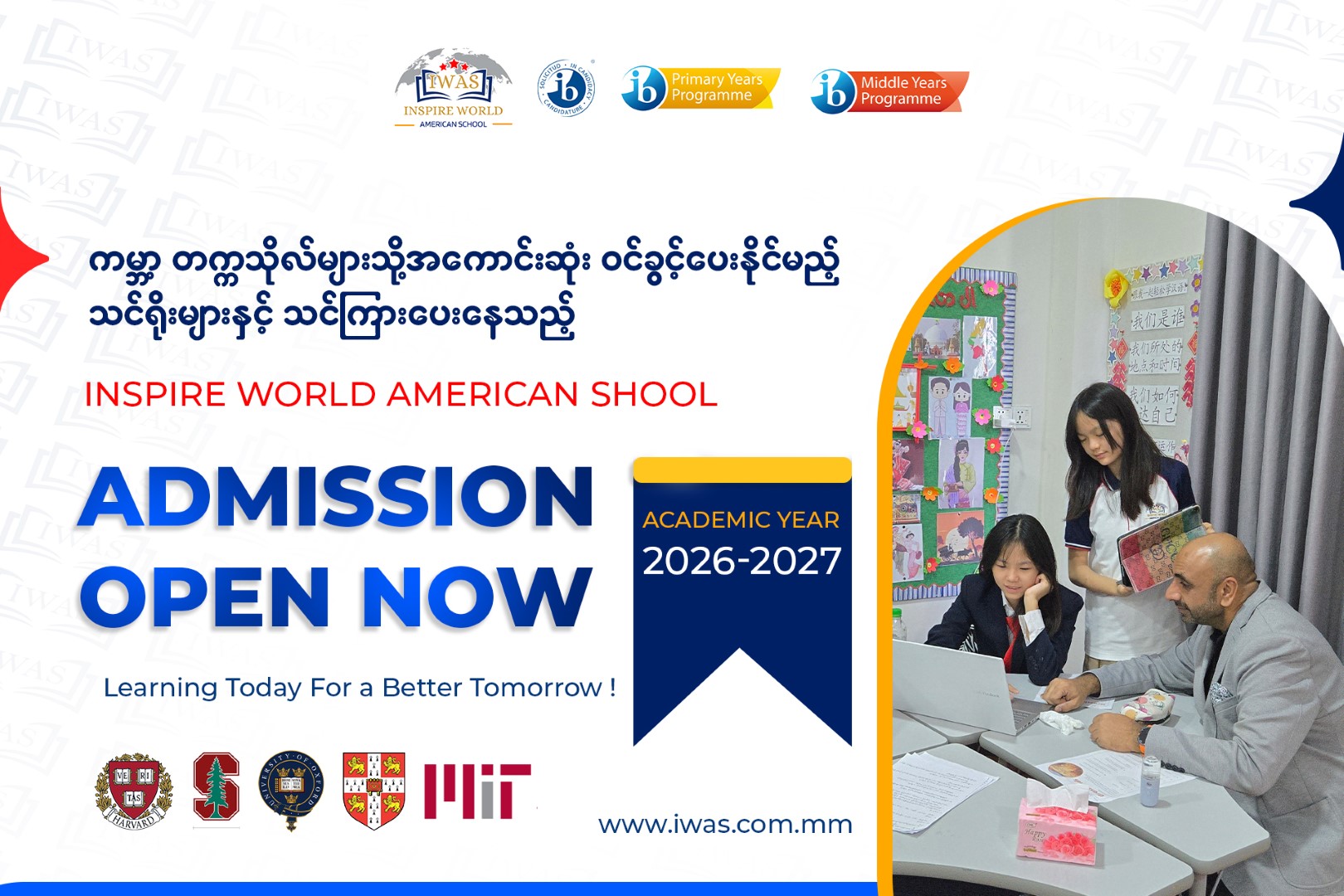 သင့်ကလေးရဲ့ အနာဂတ်ပညာရေး အကောင်းဆုံးဖြစ်စေဖို့ 𝐈𝐧𝐬𝐩𝐢𝐫𝐞 𝐖𝐨𝐫𝐥𝐝 𝐀𝐦𝐞𝐫𝐢𝐜𝐚𝐧 𝐒𝐜𝐡𝐨𝐨𝐥 (𝐈𝐖𝐀𝐒) မှာ ယုံကြည်စိတ်ချစွာ အပ်နှံလိုက်ပါ။