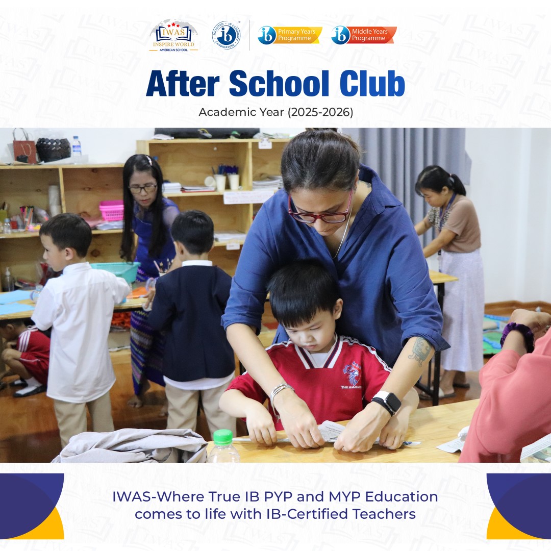 𝐈𝐖𝐀𝐒 တွင် ကျောင်းသား/သူများအတွက် ကျောင်းတွင်း သင်ခန်းစာများသာမက ကိုယ်ကာယ ကျန်းမာကြံ့ခိုင်နိုင်ရန် 𝐒𝐰𝐢𝐦𝐦𝐢𝐧𝐠 𝐓𝐢𝐦𝐞 ၊ဖန်တီးနိုင်စွမ်းတိုးတက်လာစေရန် 𝐌𝐮𝐬𝐢𝐜 𝐓𝐢𝐦𝐞 နှင့် 𝐀𝐫𝐭 𝐓𝐢𝐦𝐞 စတဲ့ ကျောင်းချိန်ပြင်ပ (𝐀𝐟𝐭𝐞𝐫 𝐒𝐜𝐡𝐨𝐨𝐥 𝐂𝐥𝐮𝐛𝐬) များ ထားရှိသင်ကြားပေးလျက်ရှိပါတယ်။